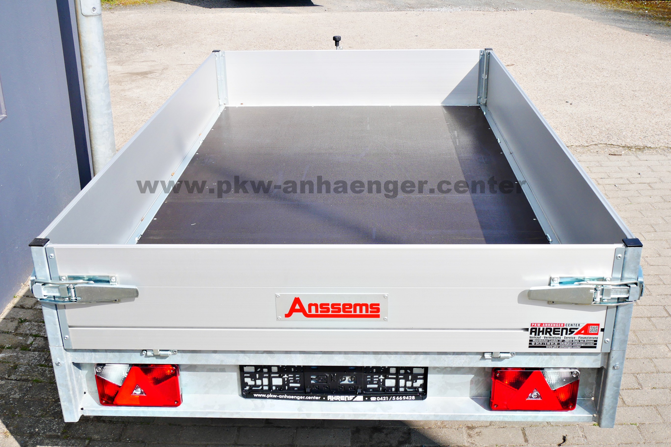 Zubehör für Anssems Pkwanhänger wie Gitteraufsatz, Bordwandaufsatz, Heckstützensatz, Box, Gurte und Schlösser haben wir auch im Angebot.