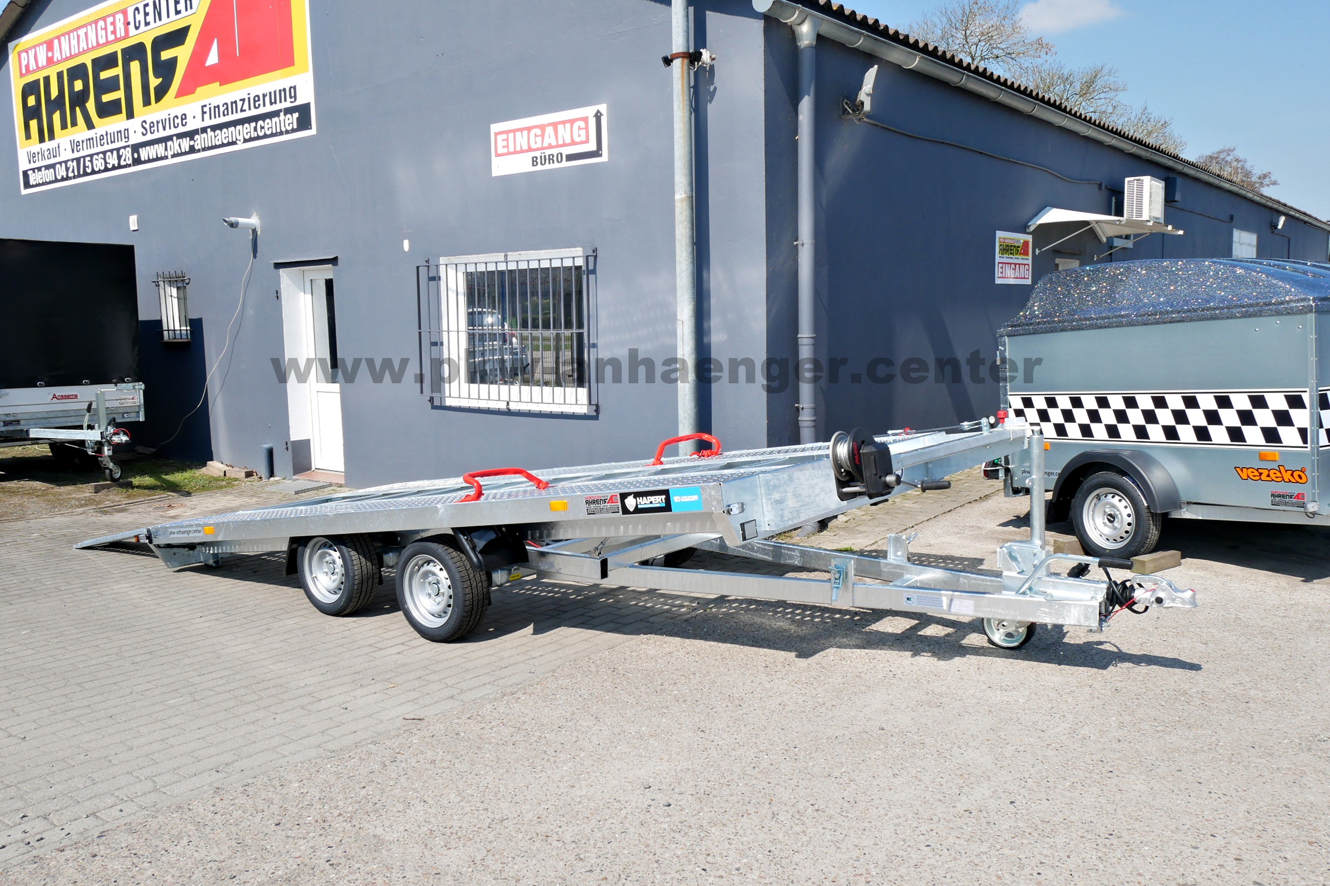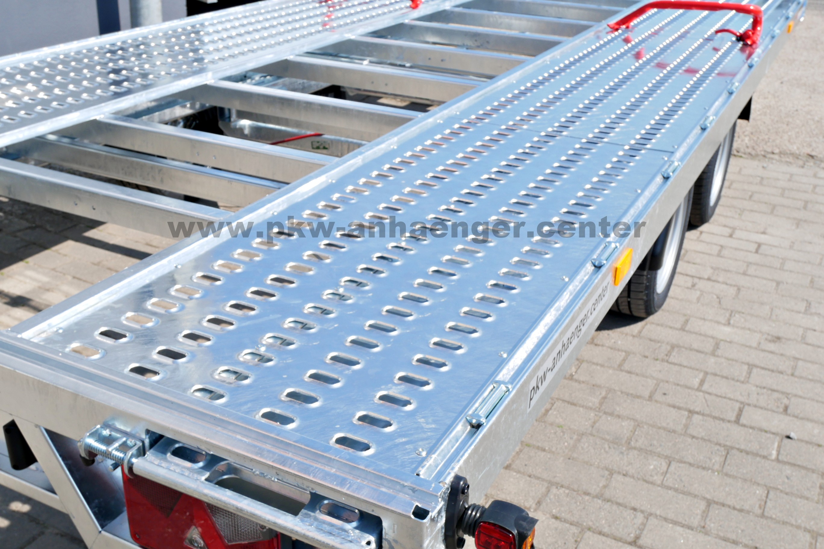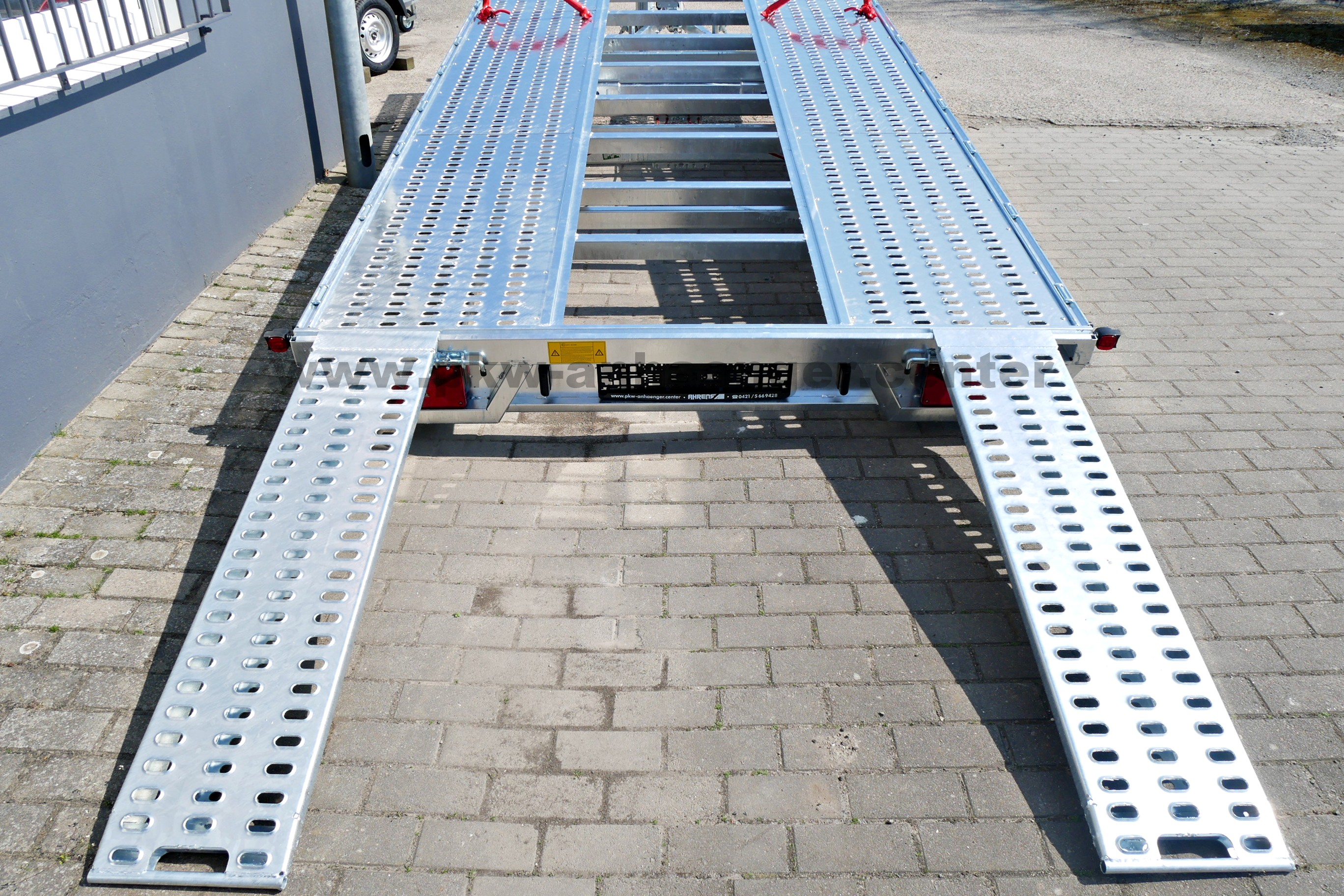 Der Autotransportanhänger ist ankippbar und hat Auffahrschienen und lässt sich somit bequem Beladen. Ein absoluter Universalanhänger nicht nur für Autos sondern auch zum Transport von Rasenmäher, Traktoren und Kleinfahrzeugen.