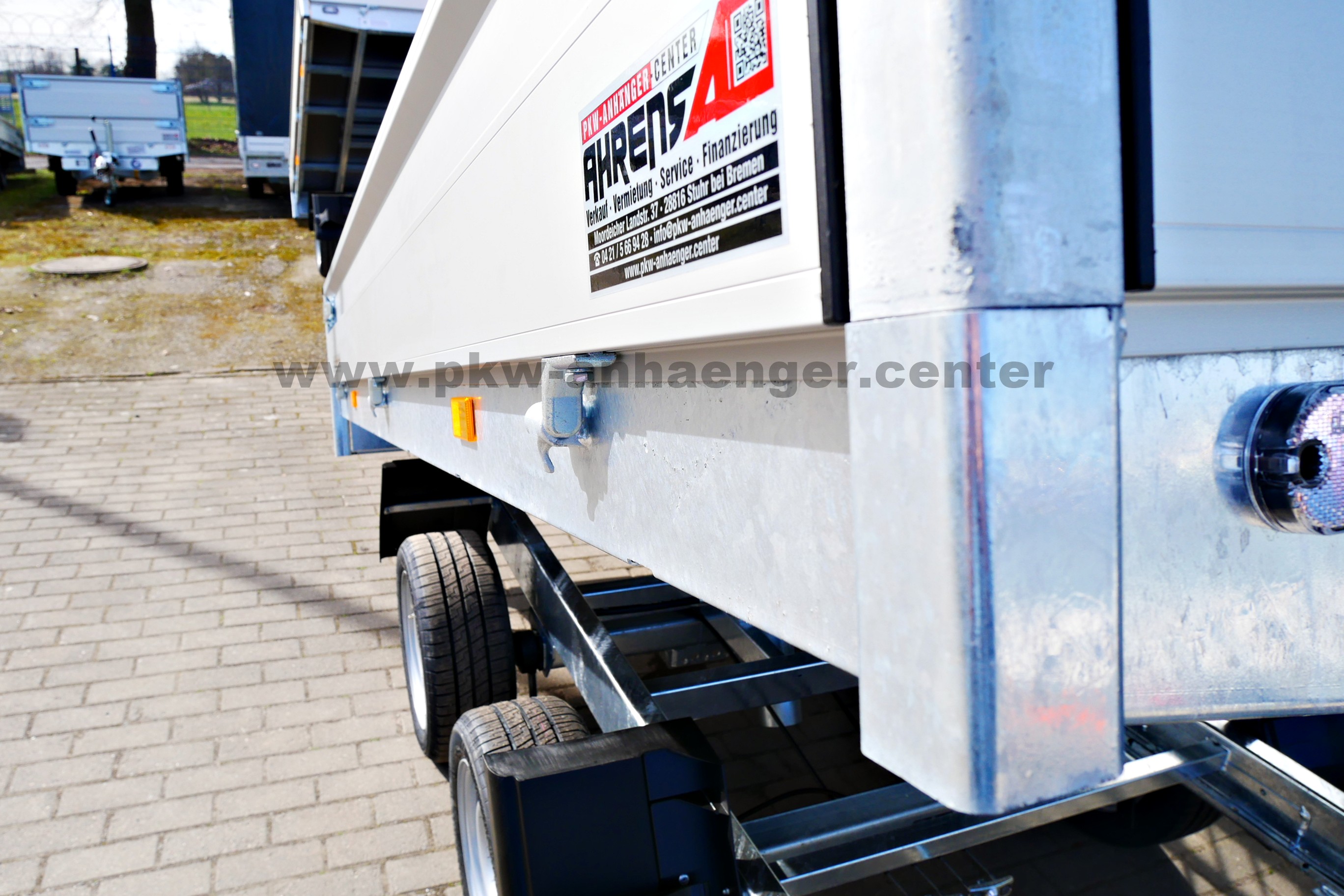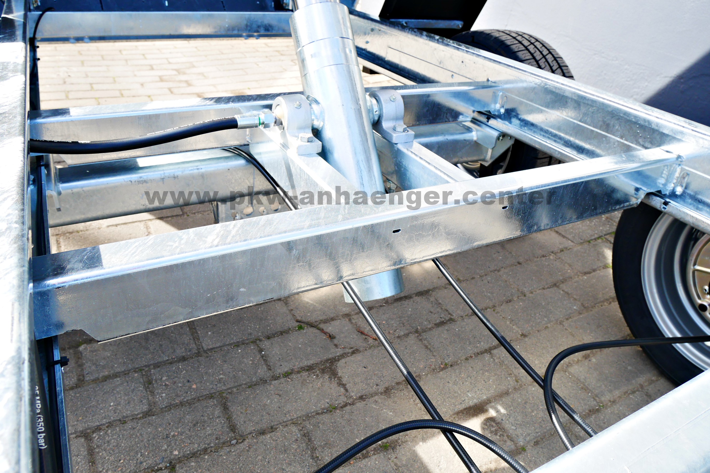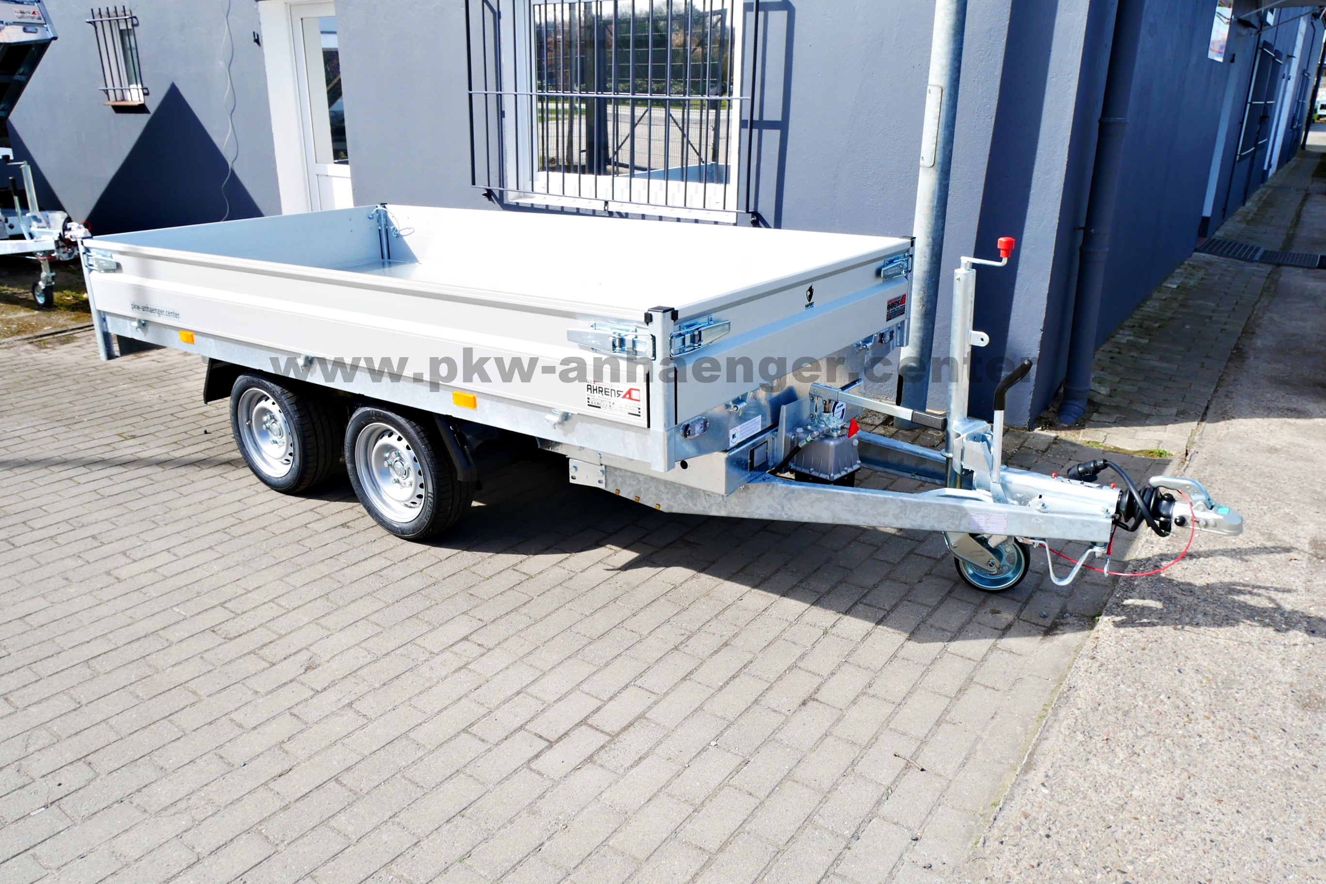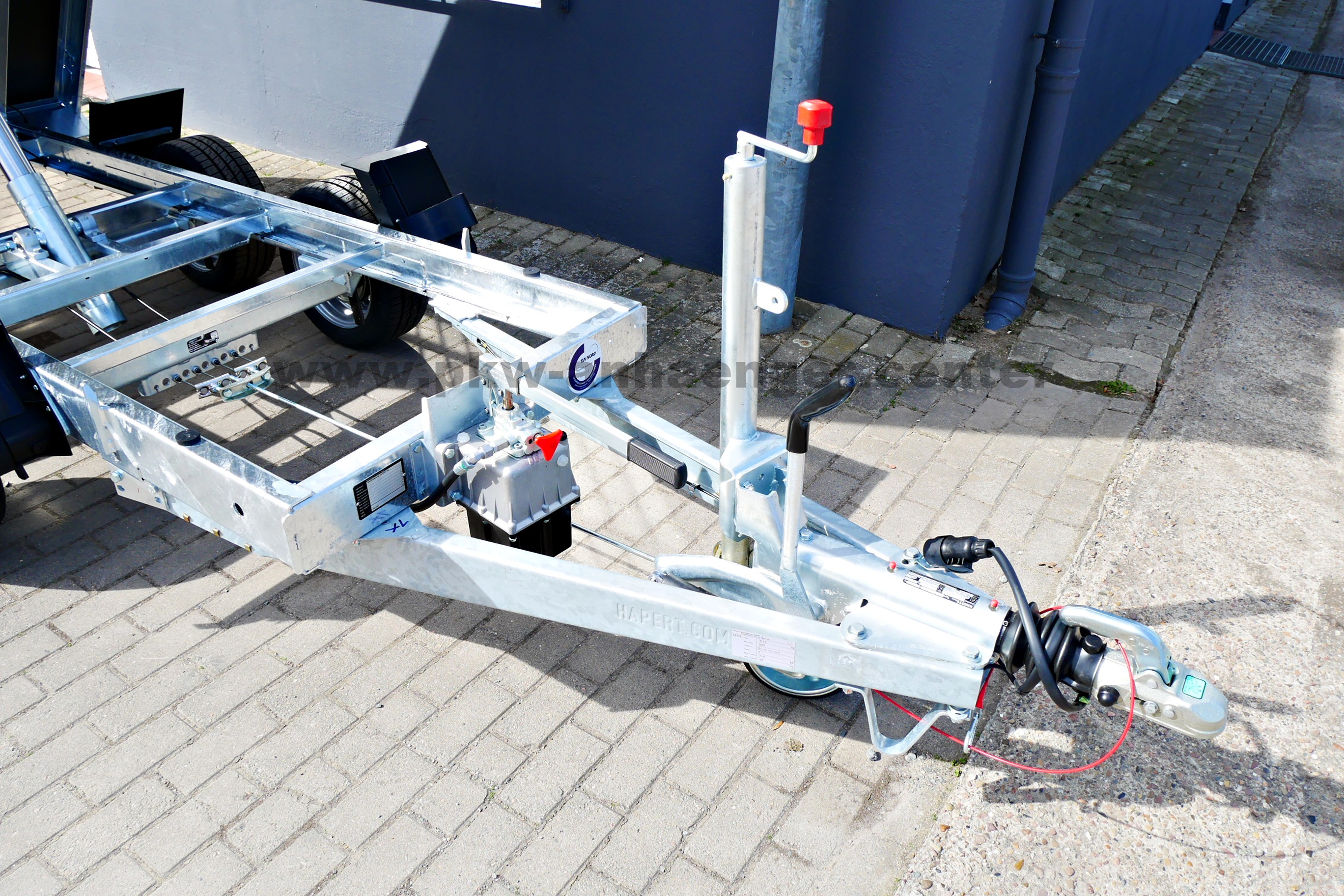 Verbaut ist ein extrem stabiler Stahlrahmen im Tauchbad feuerverzinkt, Handhydraulik, doppelwandige Alubordwände eloxiert, alle Wände sind klapp- und abnehmbar, leicht bedienbare Exzenterverschlüsse, niedriges Fahrwerk mit 195/50R13C Bereifung, Zurrösen mit 1000kg belastbar, Netzhaken, Stahlplatte auf Holzboden, Automatik-Stützrad und eine verstärkte V-Deichsel.