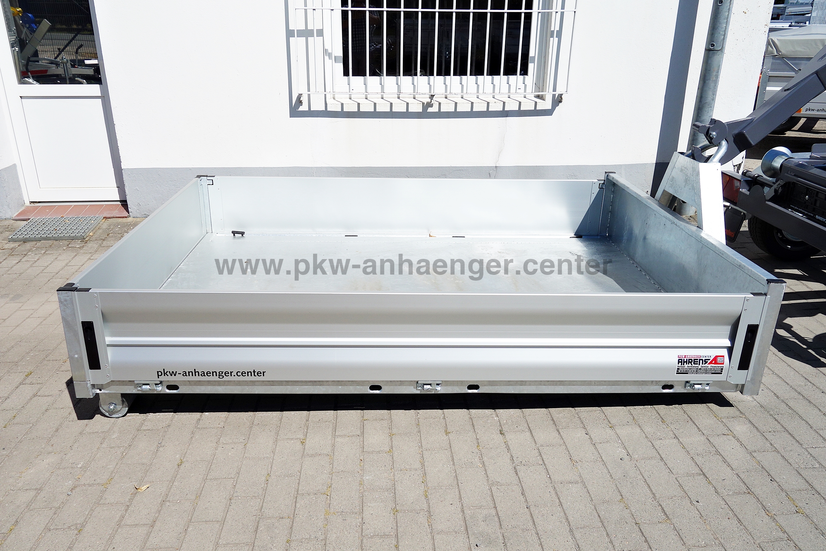 Alubordwände, die dreiseitig abklappbar und abnehmbar sind erleichtert das Be- oder Entladen.