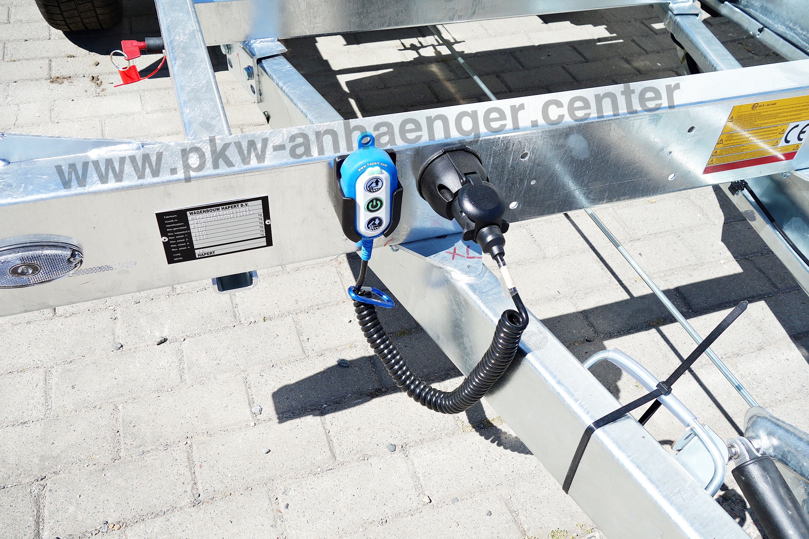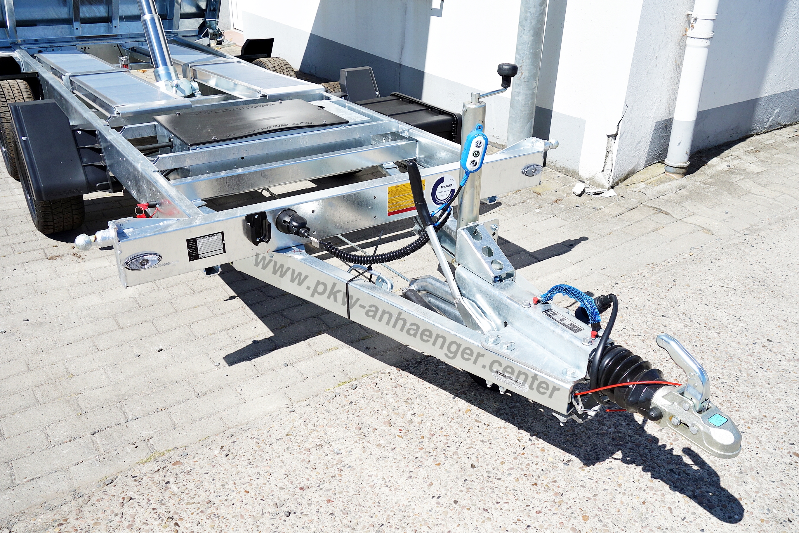 Verbaut ist ein extrem stabiler Stahlrahmen im Tauchbad feuerverzinkt, Parabelfederung mit Stoßdämpfer, Wellgitteraufsatz 55cm pendelbar, Auffahrschienen unter Ladefläche einschiebbar, Heckstützensatz kurbelbar, Elektrohydraulik mit Batterie, abnehmbare Bedieneinheit beleuchtet, doppelwandige Alubordwände eloxiert, alle Wände sind klapp- und abnehmbar, leicht bedienbare Exzenterverschlüsse, niedriges Fahrwerk mit 195/50R13C Bereifung, Zurrösen mit 1000kg belastbar, Netzhaken, Massivstahlboden, Automatik-Stützrad und eine verstärkte V-Deichsel.