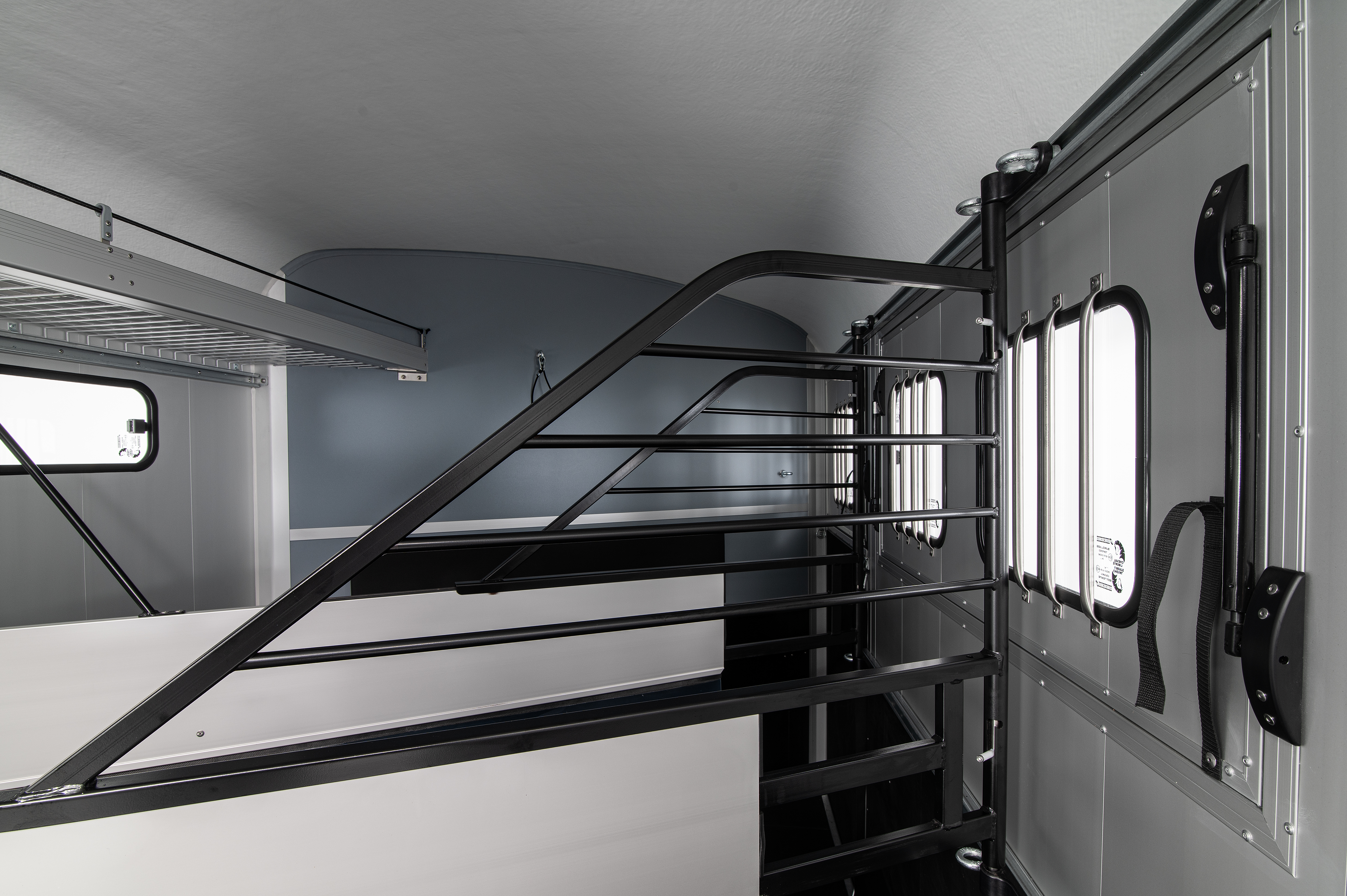 Die einstellbaren Trennwände mit Kopfgitter separieren und sichern die Pferde. Jede Trennwand ist verstell und teleskopierbar damit auch verschieden große Pferde ihren Platz finden.