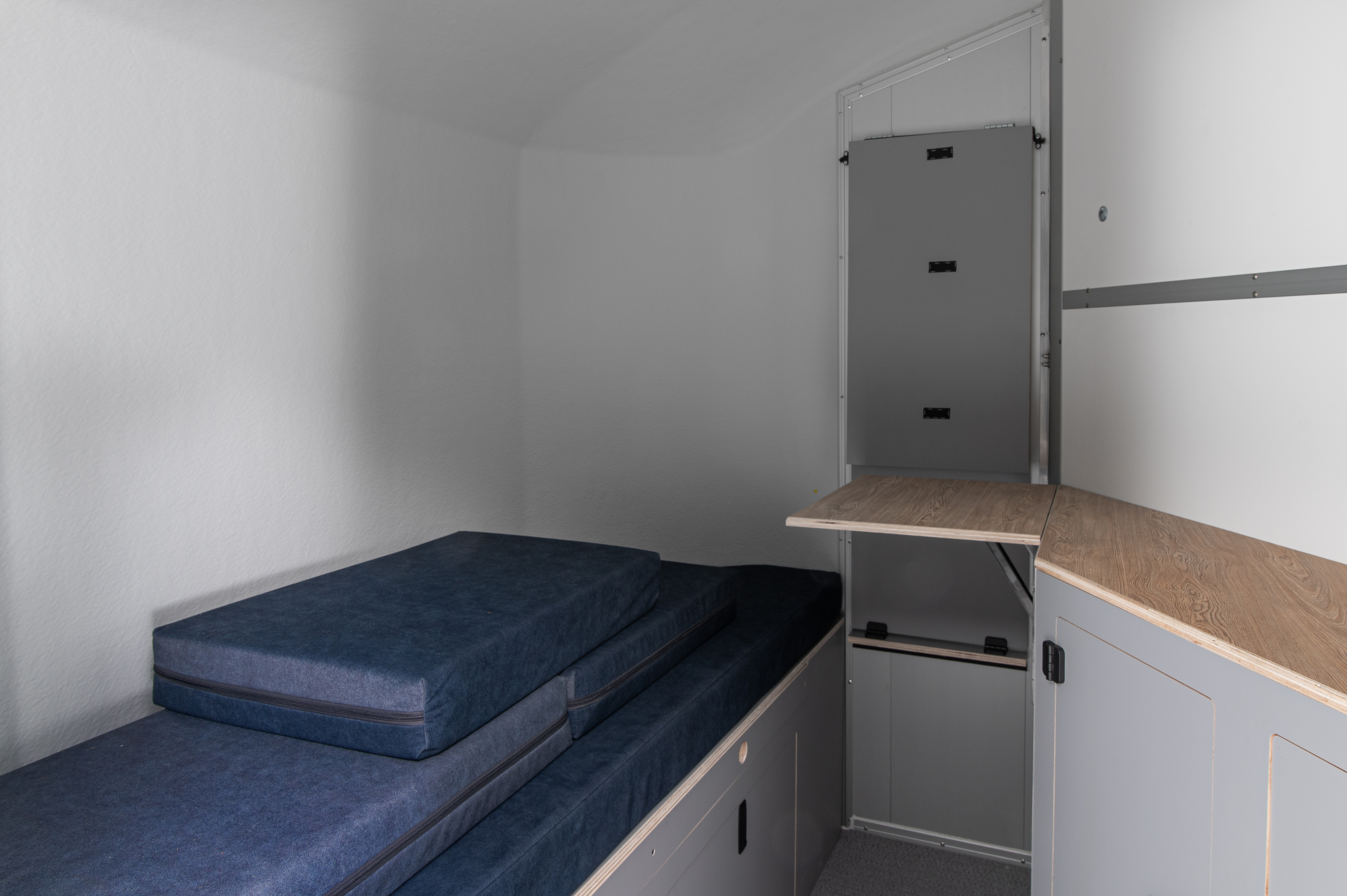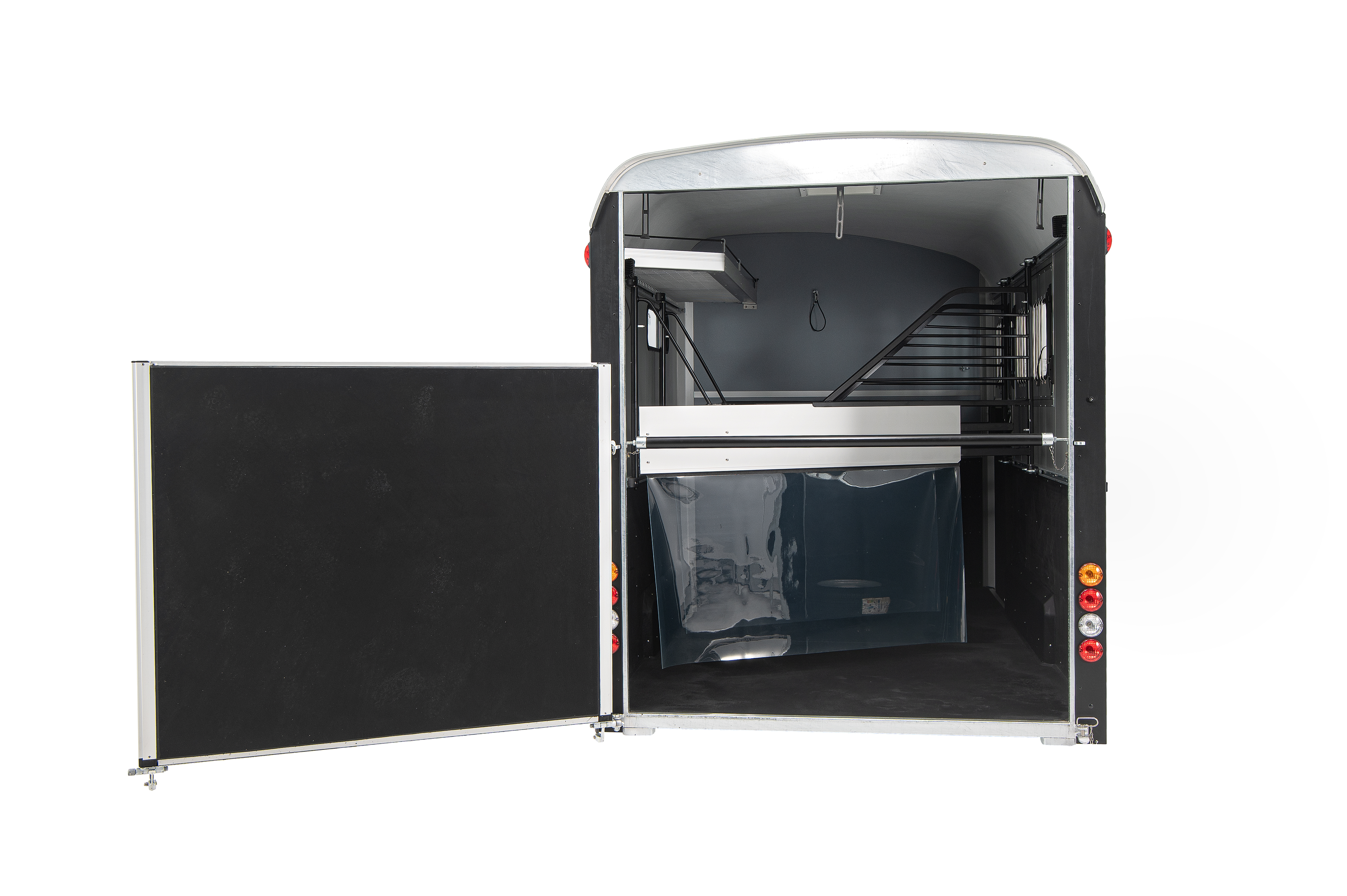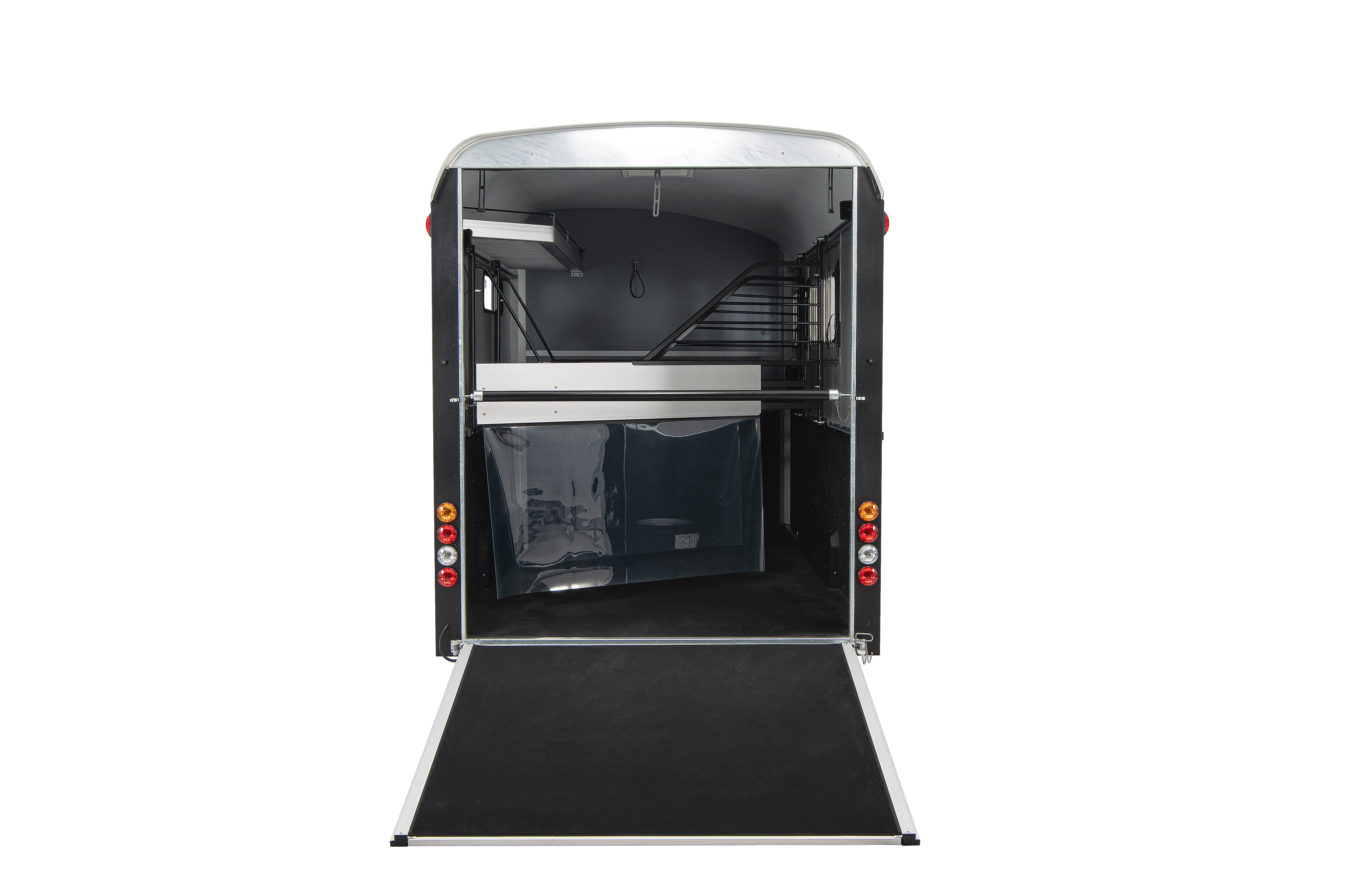 Frontausstieg, Wohnraum, Schrägverladung, Aluwänden und Aluboden vereint in einem unverrottbarem Alupferdeanhänger.